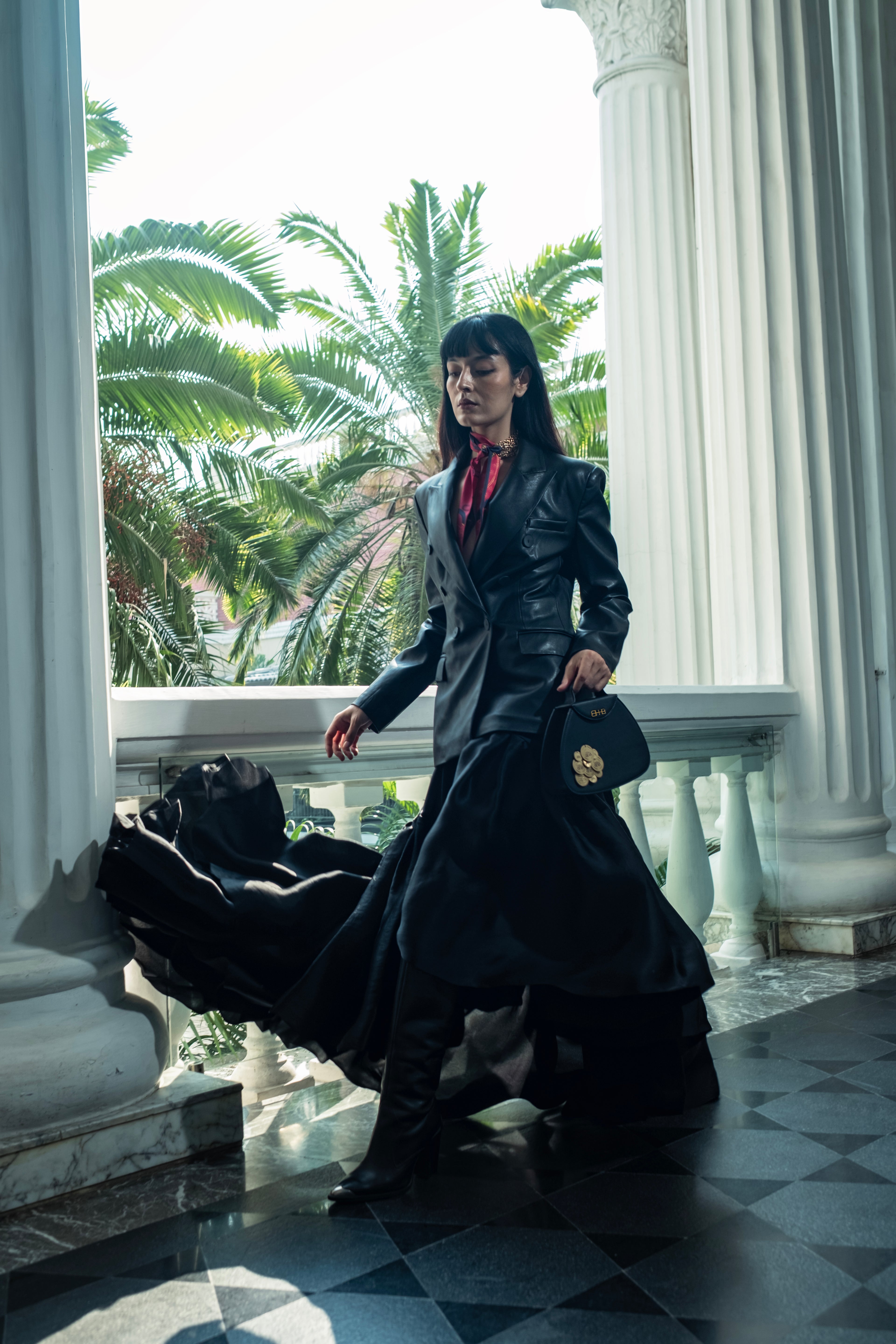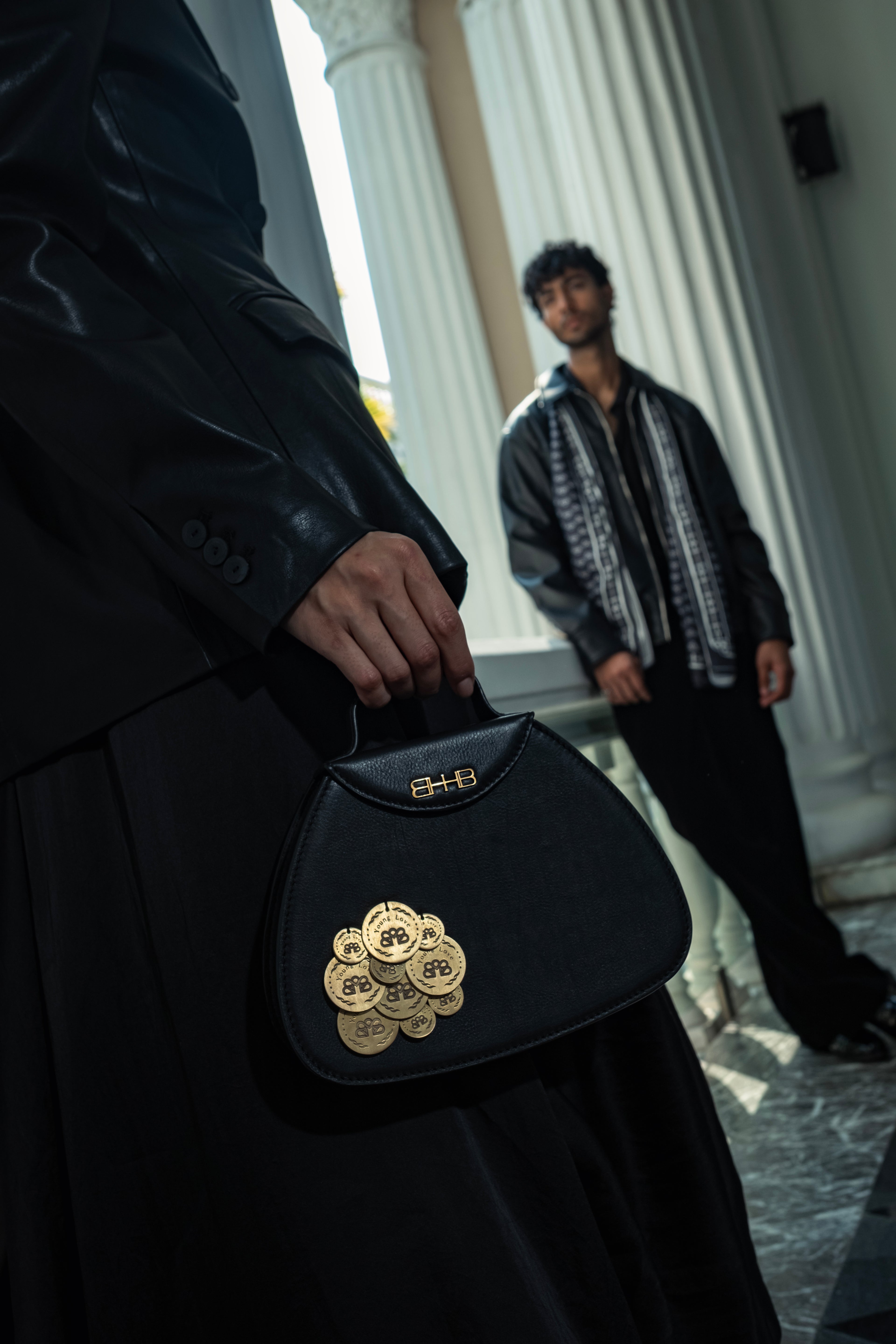 Made for entrances that matter, the Ageless Mini commands attention. Its sculptural silhouette, draped in bespoke brass coinage, is a red-carpet classic in Brown or Black — small in size, infinite in spirit.